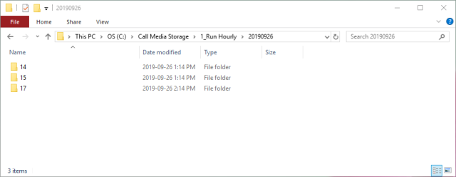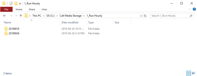 - Downloaded files will be available on your computer at the folder path specified in your Storage Folder Path setting. In my example, files are available at C:\Call Media Storage\. The Archive Scheduler will organize your media into folders. A top level folder will be created based on the name of your Task. In my example, the Task Folder name is 1_Run Hourly.