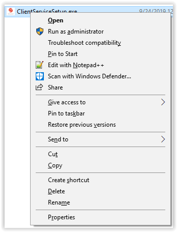 - Open the ClientServiceSetup.exe file with the option to Run as Administrator.