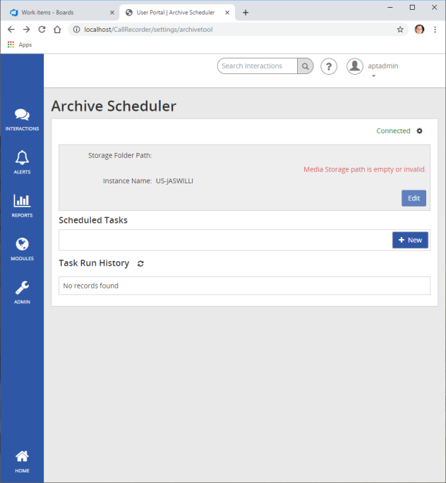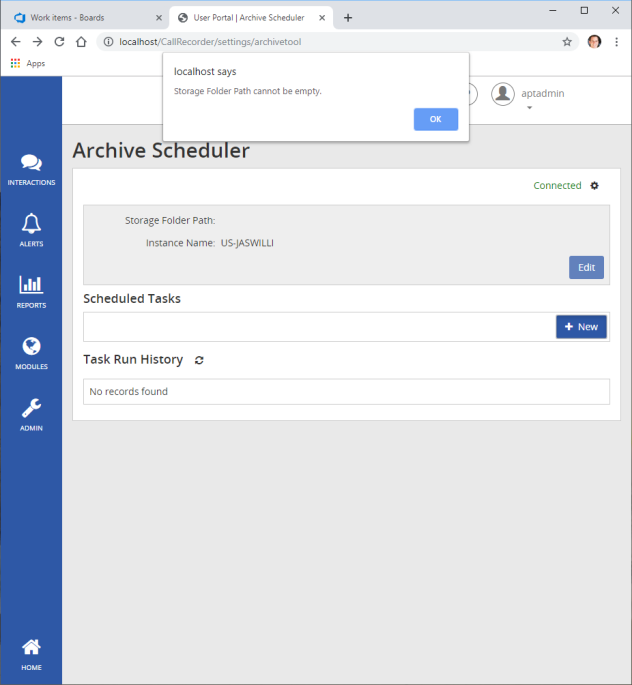 - Attempt to create a New Scheduled Task. You will see a message indicating the Storage Folder Path cannot be empty.